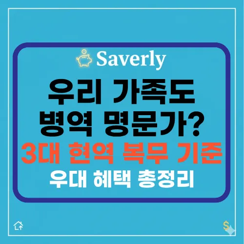 가장 중요한 것은 **3대 가족 전원이 ‘현역 복무’를 성실히 이행**해야 한다는 점입니다. 누구 한 명이라도 현역 복무가 아닌 보충역으로 마쳤다면 선정되기 어렵습니다.