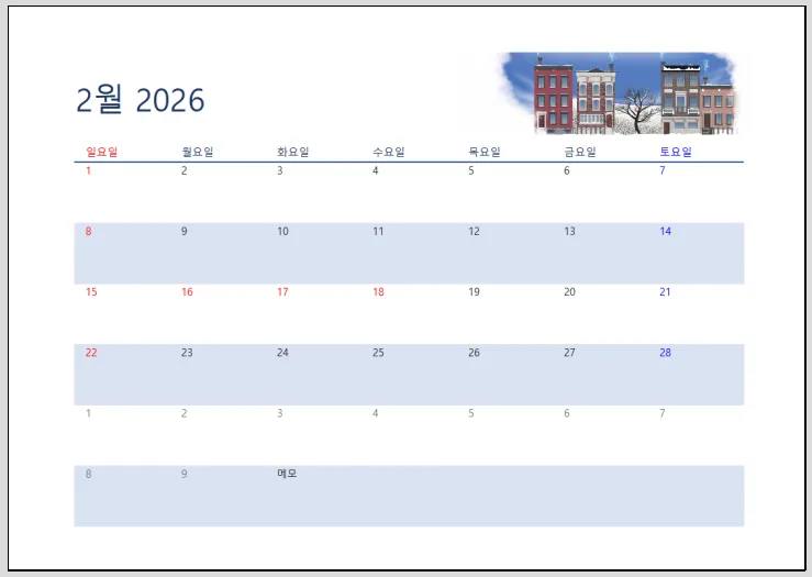 3. 2026년 엑셀 달력 양식 무료 다운로드
